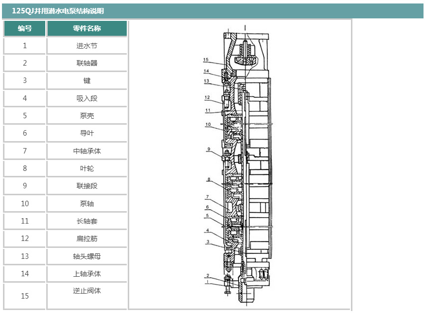 125QJ井用潛水電泵産(chǎn)品特點 1、電機、水泵(bèng)一體,潛入水中運(yun)行,安全可靠。