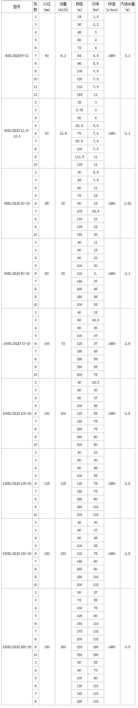 技術參數(shu): DL(DLR)型立式離(li)心多級泵(beng)