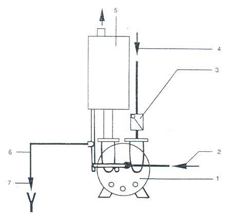 1. 2BV 真(zhēn)空泵 2. 供水管 3. 逆(nì)止閥 4. 吸氣管 5. 氣(qi)水分離器 6. 排氣(qì)管 7. 溢📐水管