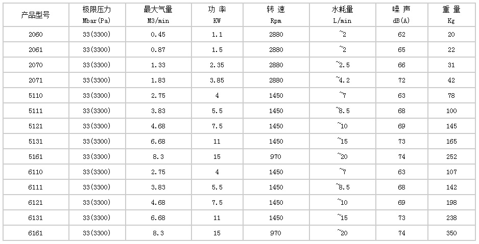 2BV型水(shui)環式真空泵的(de)主要技術數據(jù):