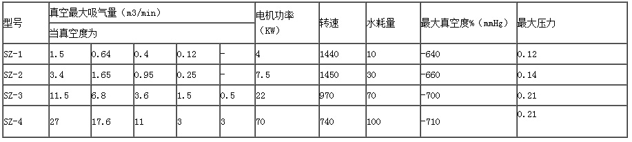 SZ水環式(shi)真空泵(beng)有SZ-1、SZ-2、 SZ-3及 SZ-4四(si)種規格(ge),泵所形(xíng)成的最(zuì)大真空(kong)度分别(bié)在86~95%之間(jian)。SZ-1及 SZ-2所能(néng)形成的(de)最大壓(ya)力為1.0~1.4公(gōng)斤/厘米(mǐ)2,SZ-3及SZ-4在👌所(suǒ)配電動(dong)機功率(lü)容許下(xià)的最大(da)壓力為(wéi)1.5公斤/厘(lí)米2,若增(zēng)🤞加電動(dong)機功率(lü)♌,最大壓(yā)力為2.1公(gōng)斤/厘米(mǐ)2(泵型意(yi)義:如SZ-1、S-水(shuǐ)環式、Z-真(zhen)空泵,1-泵(beng)的序号(hao))