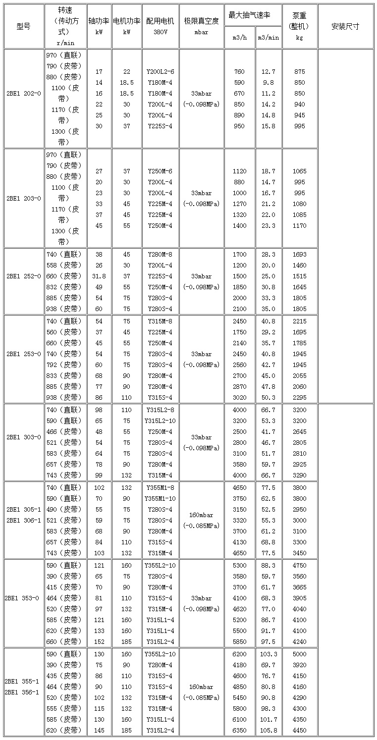 2BE系(xì)列水環式真(zhen)空泵技術參(cān)數: