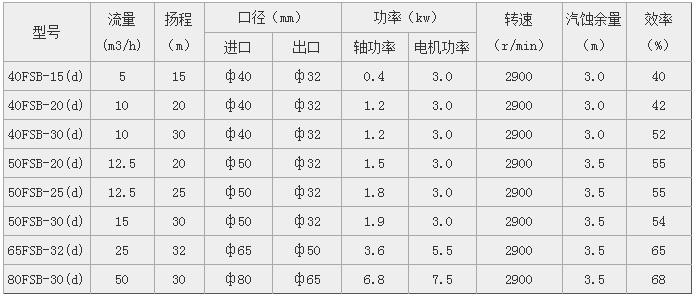 技術參數(shu): FSB型氟塑料合(hé)金化工泵