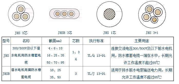 JHS防水電纜/JHSB防水(shui)扁電纜線為水下(xia)潛水泵用防水線(xian),本橡套電纜線采(cai)用防水外護套制(zhì)成。JHS型防水橡套電(dian)纜👉供交流電🌈壓500V及(jí)以下的潛水電機(ji)上傳輸電能用。在(zai)長期浸水☂️及較大(dà)的水壓💔下,具有良(liang)好的電氣絕緣性(xing)能。防水橡套電纜(lan)彎曲性能良好,能(néng)承受經常的移動(dòng).